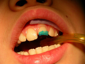 Σωστό βούρτσισμα με μια παιδική οδοντόβουρτσα και μια παιδική οδοντόκρεμα, αντίστοιχη με την ηλικία του παιδιού